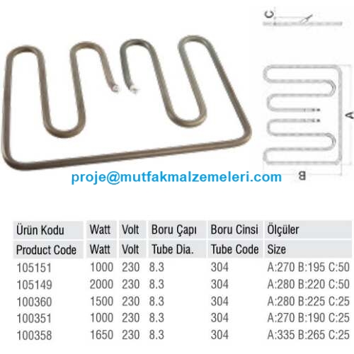İmalatı kaliteli ve profesyonel malzemelerle endüstriyel 1 Kw Tost Makinesi Rezistansı fabrikasınca üretimi yapılmış orijinal sanayi tipi 1 Kw Tost Makinesi Rezistansı modellerindendir