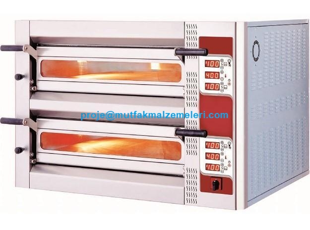 8 Pizzalık Pizza Pişirme Fırını E4302:Endüstriyel pişiriciler elektrikle çalışan pizza pişirme fırınlarından bu 8 pizza kapasiteli pizza pişirme fırını 2 katlı olup Ø30 cm'lik 8 adet pizzayı aynı anda pişirebilmektedir - 8 pizzalık pizza pişirme fırını satışı
