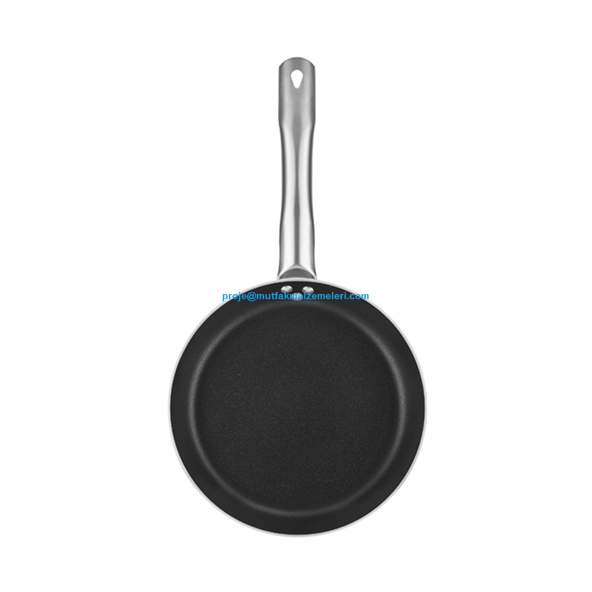 *3,5 mm ideal gövde kalınlığı, iç yüzeyde uygulanan profesyonel yapışmaz kaplama, zımparalı alüminyum dış yüzey, gövdeye özel alaşım perçinlerle sabitlenmiş ergonomik, paslanmaz çelik boru saplara ve İndüksiyon uyumlu çelik tabana sahip bu seri, profesyonellerin tercihlerinin başında gelmektedir. *Mükemmel yapışmaz özellikli iç kaplama