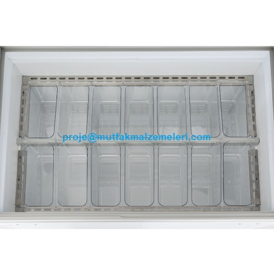 Dondurma salonları, kafeler ve pastaneler için tasarlanan açık dondurma tezgahı, müşterilerinize görsel bir şölen sunarken dondurmalarınızın kıvamını ve tazeliğini ilk günkü gibi korur. 134,8 cm genişliğindeki bu geniş reyon, 14 farklı dondurma çeşidini aynı anda sergilemenize olanak tanır. Telefon: 0212 237 07 50