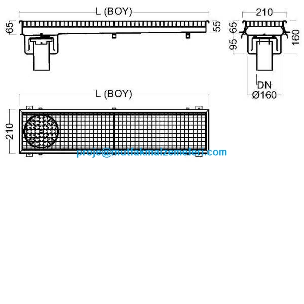 - Yer giderinin ölçüsü 210 x 1798 x 160 mm'dir.