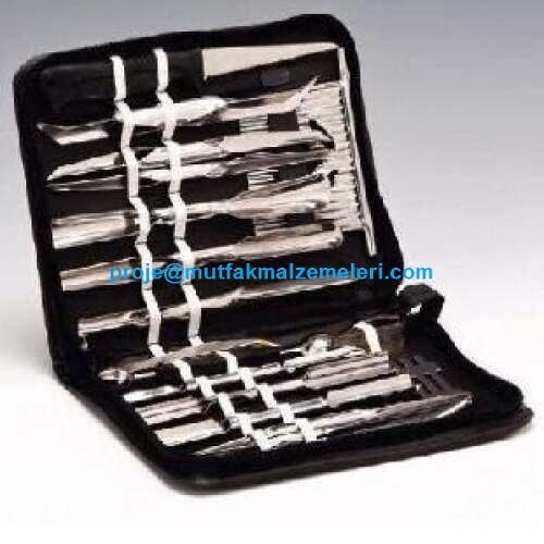Aşçı Takım Çantası JSJK 03: Aşçıların otel mutfaklarında, restoran mutfaklarında yemek pişirme hazırlığında ihtiyaç duydukları oyucu - doğrayıcı - dilimleyici - kırıcı ve şekillendiricileri ellerinin altında hazır bulabilecekleri takım çantasıdır