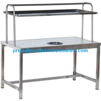 Bulaşık Alma Tezgahı SS816: Yemek servisinden çıkan bulaşıkları bulaşıkhaneye alırken kullanabileceğiniz bulaşık alma tezgahının rafı ve çöp sıyırma lastikli bulaşık sıyırma hunisi vardır - Raflı ve çöp sıyırmalı bulaşık alma tezgahlarının