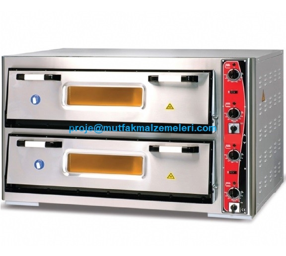 Çift Katlı Pizza Pişirme Pizzacı Fırını APF-92/2:Pizza fırınları içindeki bu pizza fırını çift katlı olmasıyla seri, hızlı pizza üretimine imkan verir. 18 pizzayı birden pişirebilen 2 katlı bu pizza fırını; ekonomik ve randımanlı iki katlı pizza fırınlarından olup, bu pizza fırınının haricinde değişik iki katlı pizza fırınları, tek katlı pizza fırını modelleri, 6 pizzalık pizza fırını modelleri; 4, 5, 6, 7, 9, 10 pizzalık pizza fırını çeşitleri de vardır - Çift katlı pizza pişirme fırını satışı