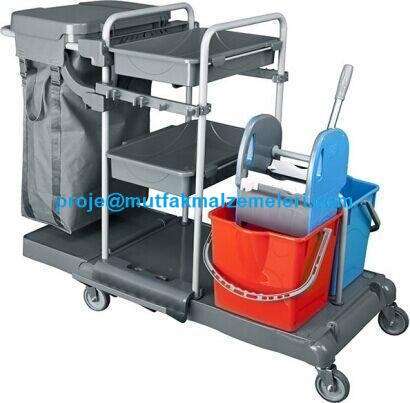 Çöp Kovalı Temizlik Arabası UCT-KA402FB: Endüstriyel tip otel, toplantı salonu, konferans salonu, pansiyon gibi yerlerde hem çöp toplayıp hem de paspas işlerinin tek bir arabayla yapılmasına imkan sağlayan çöp kovalı temizlik arabası son derece kullanışlıdır. Telefon 0212 2370750