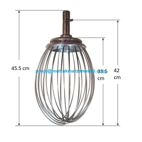 Endüstriyel mutfaklarda, pastanelerde ve fırınlarda kullanılan Dirmak mikser makineleri için özel olarak tasarlanmış bu yedek parça, en yoğun karıştırma ve çırpma işlemlerinde üstün performans sergiler. Yüksek kaliteli paslanmaz çelik tellerden üretilmiş olan ürün uzun ömürlü kullanım vaat eder.