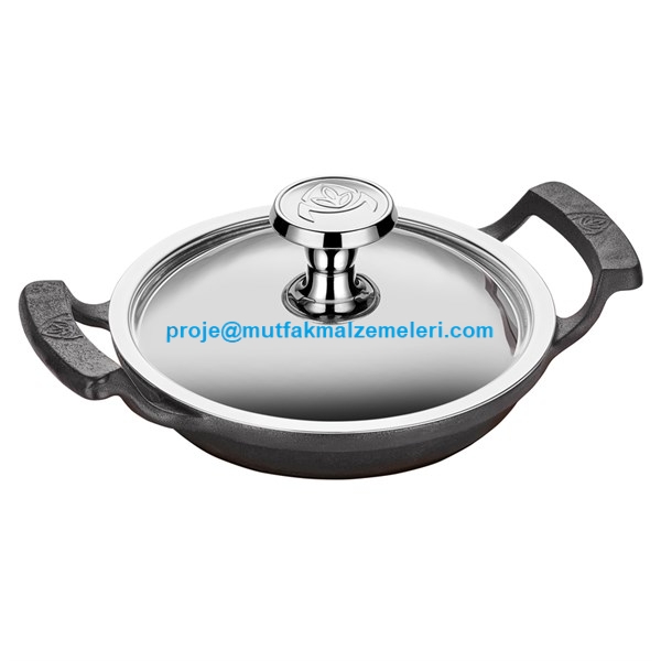 *Ø16cm. Yuvarlak, Sahan. *Döküm Demir Gövde, Kulplu. *1mm. İç Bükey Taban. *304 P.Çelik Kapak ÜRÜN TANIMI *Döküm Demir eski zamanlardan beri pişirme gereci olarak kullanılmaktadır.Demir Dökümün tercih edilmesinin başlıca sebebi,ısıyı iyi iletme özelliği ve uzun süre sıcak kalabilmesidir. *Son dönemlerde yemeğin masaya sıcak servis edilmesi ve daha uzun süre sıcak kalabilmesi konusundaki artan talepler doğrultusunda,Döküm Demirin sunumlarda da kullanılması yaygınlaşmıştır. *Döküm Demir serisi bu amaçla üretilmektedir ve birbirinden şık model,altlık ve kapak alternatifleri ile bu ihtiyacı karşılarken,Profesyonellere sunum şıklığı da sunmaktadır. KULLANIM VE BAKIM ÖNERİLERİ *Metal kaşık ve kesici aletler kullanmayınız. Tahta ve plastik türü karıştırıcılar tercih ediniz. *Ürünü yıkarken bulaşık teli ve sert bulaşık tozu kullanmayınız. Sıvı veya krem deterjan kullanınız. *Bu önlemler ürünün ömrünü uzatır.