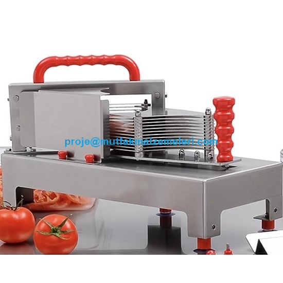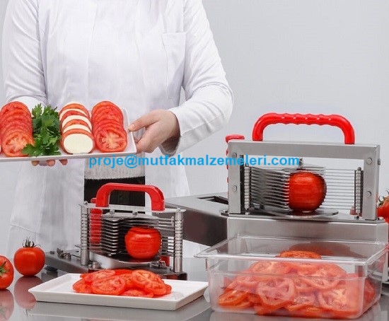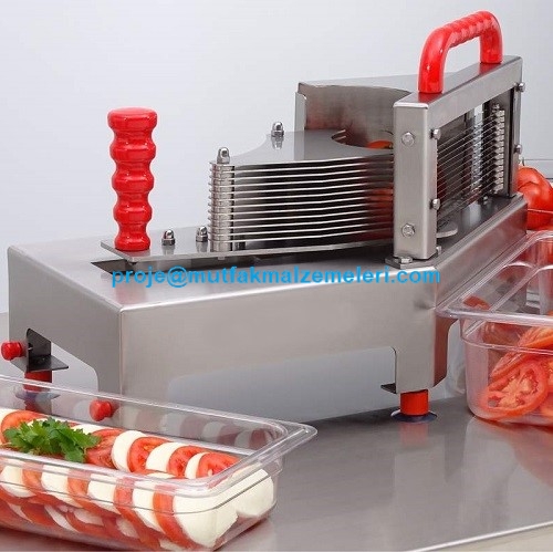 * Domates dilimleme makinesi büyük ölçekli üretimlerde, otel, restaurant, cafe, catering, fast-food ve açık büfe kahvaltı gibi benzeri yerlerde kullanılmaktadır