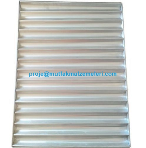 Düz saçtan baget ekmek tepsisinde 11 enine baston ekmek pişirme bölümü vardır (ekmek kanalı ölçüleri genişlik 70 mm yükseklik ise 30 mm ölçüsündedir)
