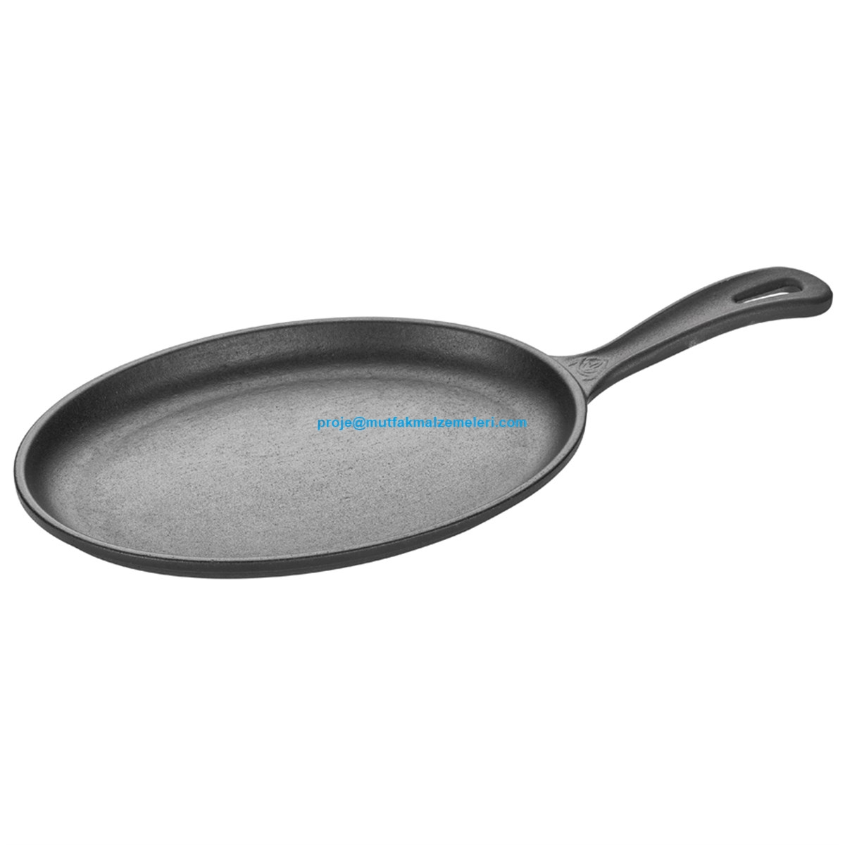 Endüstriyel tipi profesyonel fajita servis tavalarından olan döküm oval fajita tavasının ölçüleri 21x15 cm olup; kafelerde tavuklu fajita servisinde kullanılmaktadır - Fajita tavası satışı 0212 2370751
