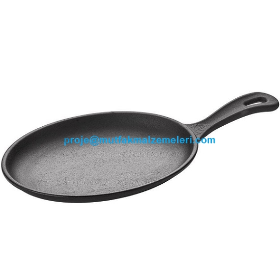 Fajita Tavası A 120SA 21:Endüstriyel tipi fajita servis tavalarından olan bu demir döküm oval fajita tavası kafelerde restoranlarda etli tavuklu sebzeli fajitaları hem pişirmekte ve hem de servis etmekte kullanıma uygun fajita tavasıdır - Fajita tavası