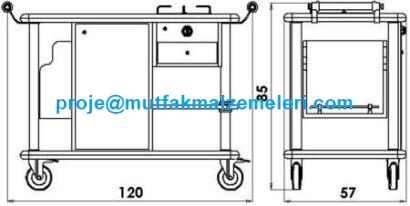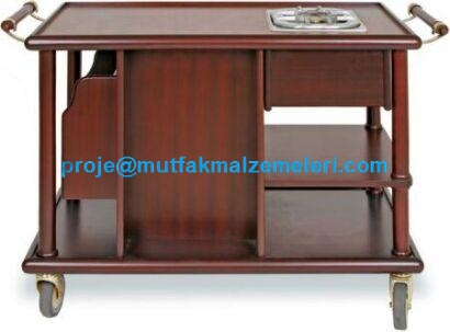 Bu Flambe arabası, restoranlarda misafirlerin masalarının yanında yiyecek hazırlama ve servis etme amacıyla kullanılan, tekerlekli, özel donanımlı bir servis aracıdır. Fransız mutfağından gelen ve "alevlendirme" anlamına gelen "flambe" tekniğini uygulamak için üzerinde gazlı ocağı vardır.