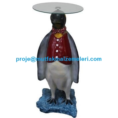 Havuzbaşı İçin Penguen Heykelli Sehpa A02409:İmalatı özel olarak heykel zanaatkarları tarafından yapılan bu penguen şeklindeki üstü sehpalı heykel 77 cm uzunluğunda olup aquaparklarda havuzlarda çocuk havuzlarında plajlarda kullanıma uygun son derece şık çay kahve yemek sehpasıdır - Havuzbaşı için penguen heykelli sehpa