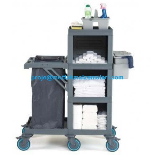 Kat Hizmet Arabası, dar kullanım alanlarına sahip otel, hastane, yurt ve rezidans gibi işletmelerin kat hizmetleri için özel olarak tasarlanmıştır. Bu araba, pratik ve standart bir temizlik deneyimi sunarak operasyonel verimliliğinizi artırır. Telefon: 0212 237 07 49