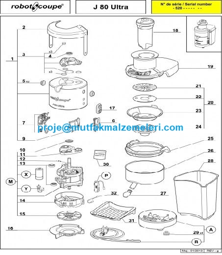 Robot Coupe Katı Meyve Sıkacağı İticisi J80-39283:Orijinal Robot Coupe katı meyve sıkacağı iticisi Robot Coupe J80 katı sebze presleme makinesi ve J100 katı meyve sıkma makinası iticisi olarak kullanılmaktadır.Patlamış resimdeki 18 numaralı yedek parçadır.İmalatı Robot Coupe fabrikası tarafından yapılmış bu orijinal Robot Coupe katı meyve sıkacağı haricinde posa haznesi,katı meyve sıkacağı haznesi kapağı,disk bıçağı,rendesi,tası,hazne altlığı,göbeği gibi tüm orijinal Robot Coupe katı meyve sıkacağı yedek parçalarını da bizden güvenle temin edebilirsiniz - Robot Coupe katı meyve sıkacağı iticisi satışı