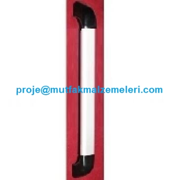 Endüstriyel kuzinelerin fırın kapılarında kullanılan bu kapak kolu - kapak kulbu alüminyum profil tutamağı ve yanlarda bakalit desteklerden oluşmuştur
