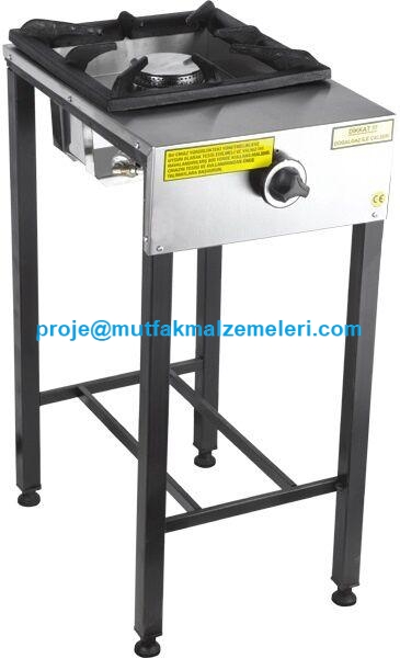 Kare gövdeli, yüksek ağırlık kapasiteli, tek gözlü ve ayaklı model sanayi tipi lokanta ocağı. Paslanmaz detaylara ve güçlü döküm ızgaraya sahip, CE belgeli profesyonel gazlı yemek pişirme ocağı.