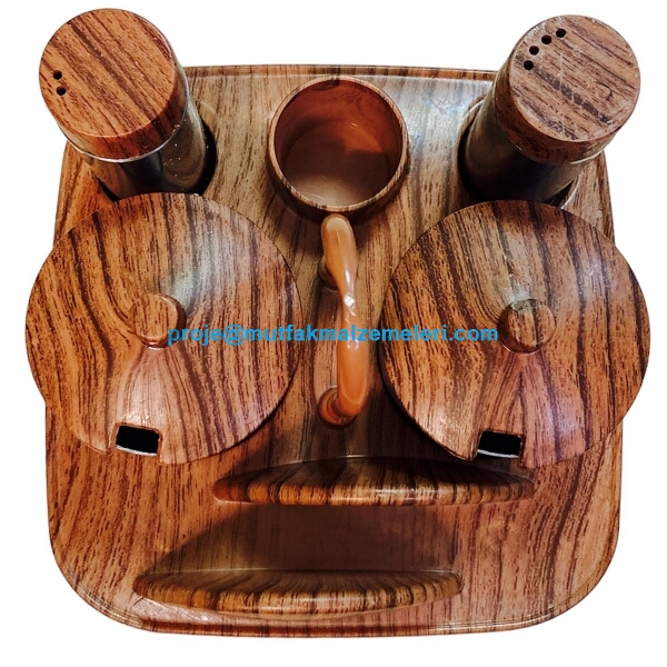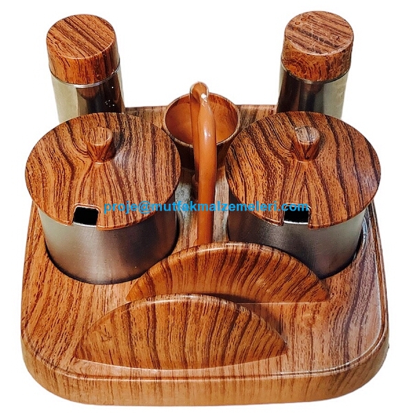 - Ahşap görünümlü baharatlık tuzluk biberlik peçetelik büfe, restaurant, lokanta, kafelerde kullanıma uygun ve şık görüntüsüyle uyum sağlar.