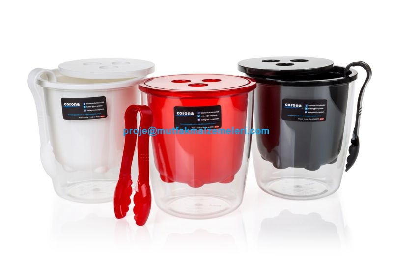 İzoleli Buz Kabı BO601 BR-388: İç içe iki kaptan oluştuğundan buzu izole ederek saklar. Buz kabının altında eriyen buz sularının altta toplanması için delikleri vardır