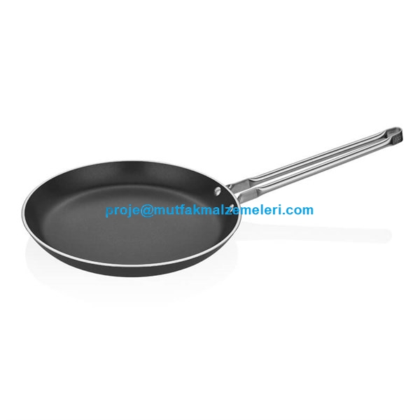 Milenyum Serisinden yuvarlak krep omlet tavası alüminyum gövde düz taban özelliklerine sahiptir ayrıca 304 paslanmaz çelik sapı ve AG2 alaşım özellikleriyle dayanıklıdır.