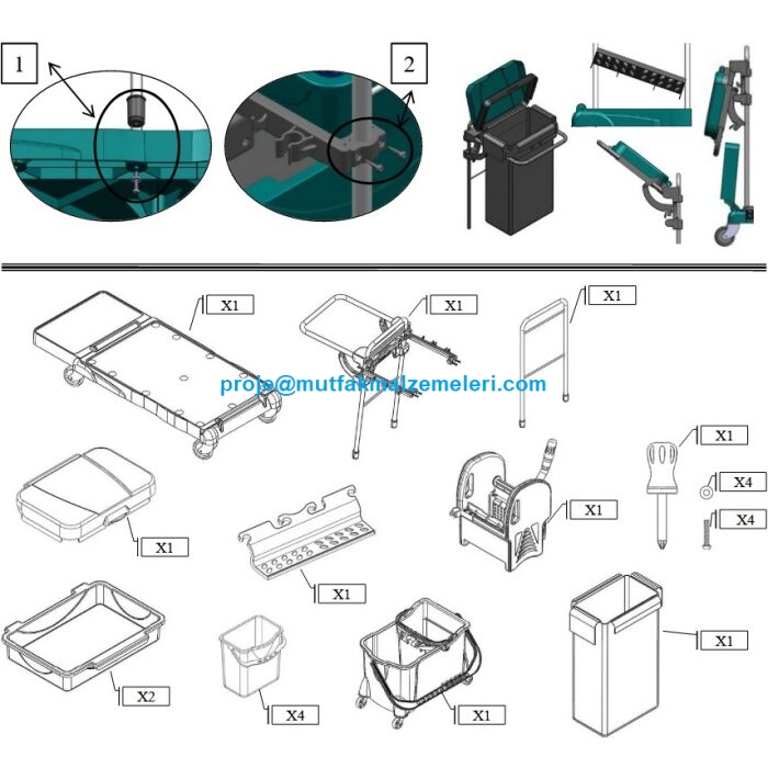- Model: Otel Tipi Çamaşır Torbası ve Kovalı Temizlik Arabası