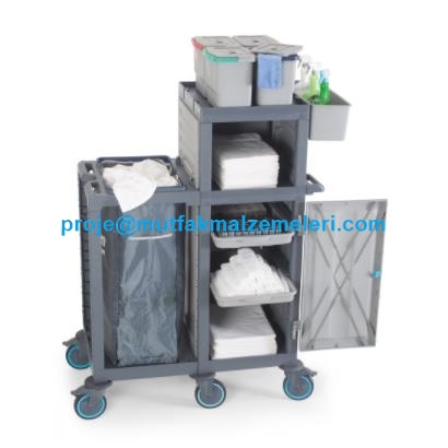 Pansiyon Çamaşır Arabası PROCART 410: Pansiyonların kat hizmetlerinde pratikliği açısından tercih edilir. Kolayca hareket edebilen sessiz, tamponlu ve frenli tekerlekleri sayesinde çarpmalara karşı dayanıklıdır. Frenli tekerlekler ile eğik düzlemlerde sabitleme imkanı sunar - Pansiyon çamaşır arabası