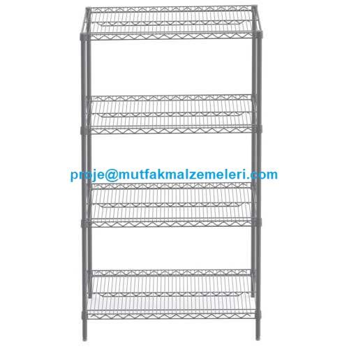 - 4 katlıdır, ayaklarıyla rafların iskeleti 304 kalitede paslanmaz çeliktir.