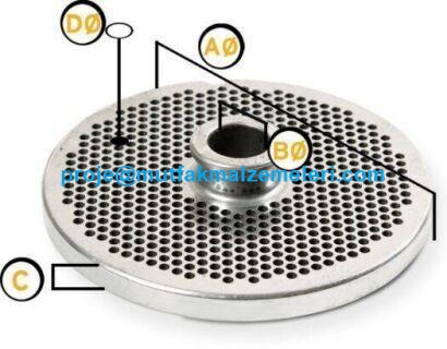 Plastik Doğrama Makinası Aynası KMA42 NO 4MM: Plastik parçalama makinası bıçakları granül plastik çıkarma makinesi aynaları hurda plastik doğrama makinesi süzgeçlerinden plastikleri 4 mm.lik parçalar halinde doğranarak et makinasından çıkartılmasını sağlayan bu plastik doğrama makinası süzgeci 42 no plastik doğrama makinalarında kullanıma uygun üretimi dövme çelikten yapılmış plastik doğrama makinası aynasıdır.Plastik doğrama makinası süzgecinin ölçüleri A=130 B=20 C=12.5 D=4 mm.dir - 42 lik kıyma makineleri için granül plastik doğrama çekme çıkarma aynası