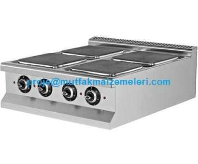 Endüstriyel mutfakların en çok tercih edilen pişirme ekipmanlarından biri olan 4 pleytli elektrikli ocak, kompakt tasarımı ve yüksek performansıyla öne çıkar. Paslanmaz çelik gövdesi ve hassas ısı kontrolü sağlayan şalter sistemiyle restoran, otel ve kafeteryalar için mükemmel bir çözümdür. Telefon: 0212 237 07 59
