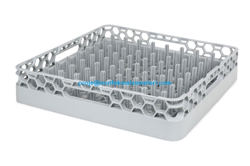 Endüstriyel bulaşık makinelerinde kirli porselen tabakları, self servis tepsilerini ve işçi tabldot yemek tabağı yıkamak için kullanılan plastik sepet modellerindendir. Bulaşık yemek servis tabağı yıkama basketinin üretimi 50x50 cm.lik kaliteli ve dayanıklı plastikten yapılmıştır.