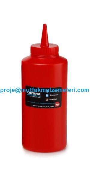 Kırmızı Ketçap Şişesi BO2103 BR-402: 420 mililitre kapasiteli kırmızı renkte plastik kafe, büfe, kantin tipi ketçap sıkma şişesidir