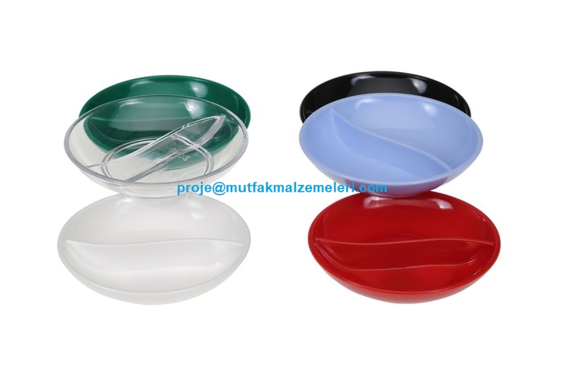 2 Bölmeli Profesyonel Sos Kabı BO725 BR-392: Kafelerde, restoranlarda, yemekhanelerde 2 ayrı sosu aynı kapta sunabileceğiniz bölmeli sos kabı kasesidir