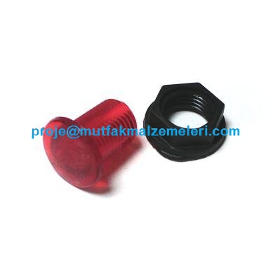 Sinyal Lambası Camı AESLM10-C:Çay makinesi sinyal lambaları tost makinası elektrik lambaları endüstriyel makine göz lambalarından bu sinyal lambası camının imalatı kablolu elektrik sinyal lambalarında tek kırmızı lamba camı ve sıkma somunu olarak kullanılmak üzere kaliteli elektrik sinyal lambaları camları fabrikası üretimi olarak plastikten yapılmış profesyonel sinyal lambası camı yedek parçasıdır.Sinyal lambası camı çay semaveri çalışma lambası tost makinası elektrik lambası elektrik panosu mini sinyal lambası fritöz elektrik göz lambası sahlep makinası elektrik ışığı kahveci kazanı termostat lambası çaycı ocağı elektrik ikaz lambası olarak kullanılmaktadır Kırmızı renkli elektrik sinyal lambaları için tek sinyal lambası camı ve sıkma somunu parçaları satışı