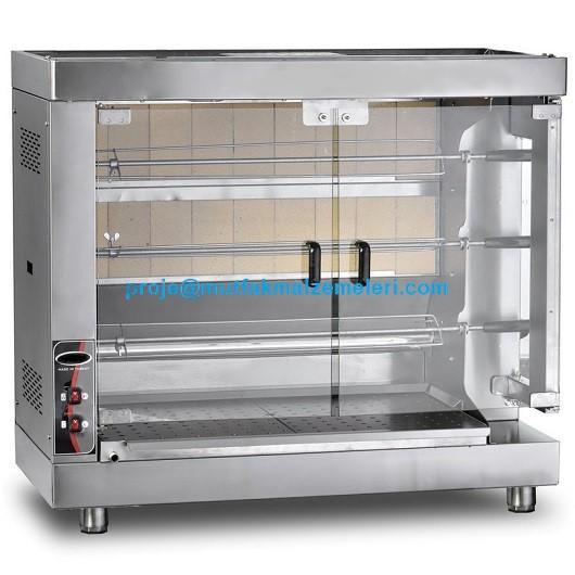122,5x55x93 cm ölçülerindeki bu cihaz, 230V-40W gücündeki motorlu şiş döndürme mekanizması ile tavukların sürekli dönerek eşit pişmesini garanti eder. Kayseri'deki bir lokantadan Kocaeli'ndeki bir markete kadar her noktada ayarlanabilir yanma kapasitesi sayesinde enerji tasarrufu ve pişirme hızı kontrolü sağlar. Telefon: 0212 237 07 59